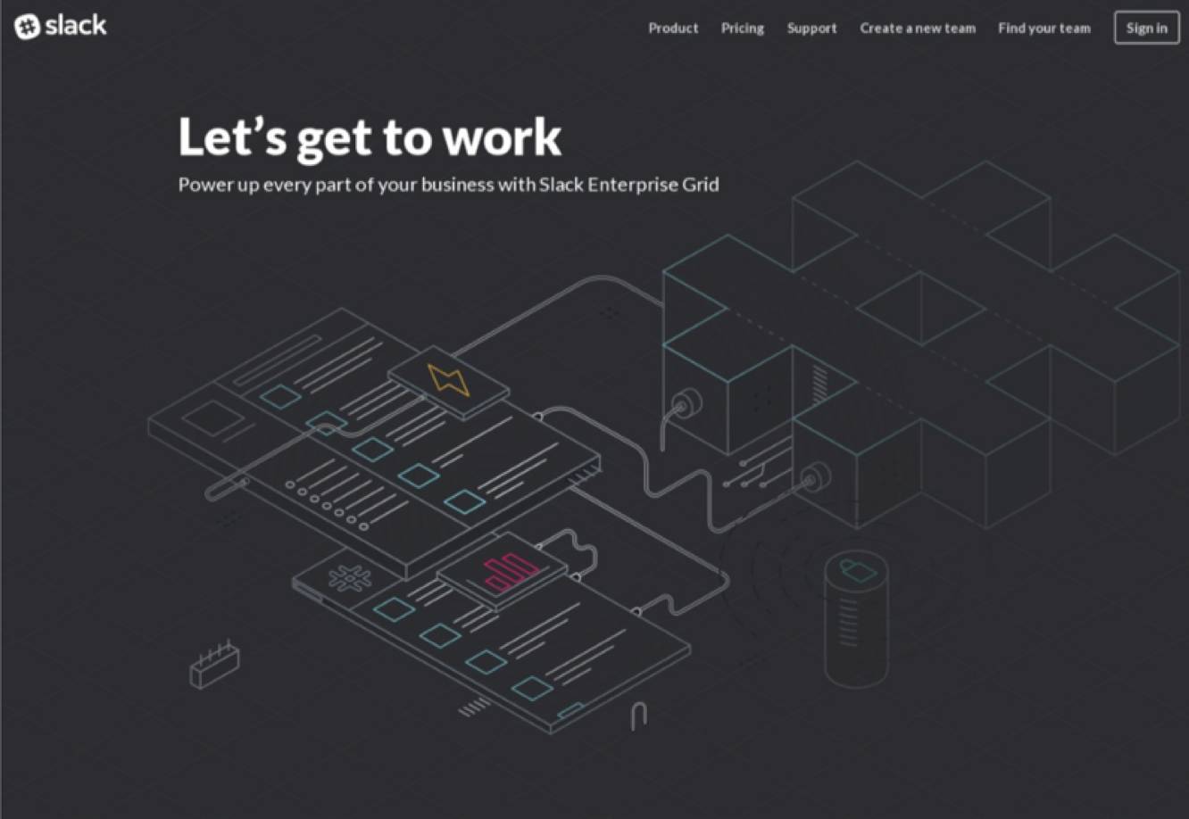 slack的官網(wǎng)上主banner圖形采用的這種設(shè)計(jì)方法,讓主頁更有空間感。