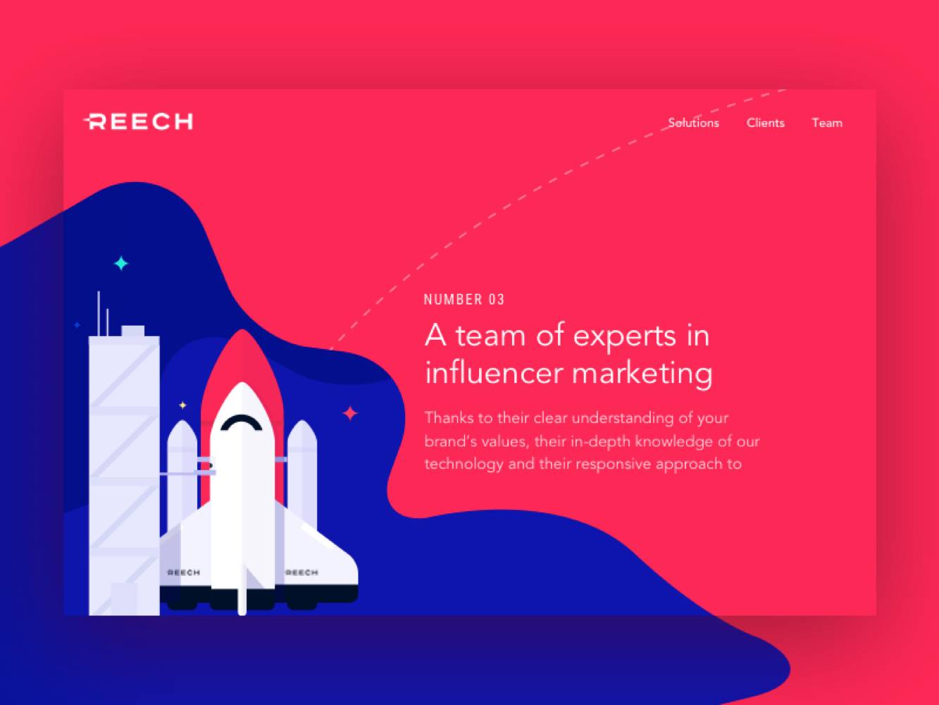 REECH在頁面設(shè)計(jì)時(shí)候運(yùn)用對角線作為深色,同時(shí)結(jié)合流動(dòng)的線條凸顯主營業(yè)務(wù)和速度感。