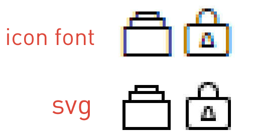 icon font采用的是字體渲染,icon font在一倍屏幕下渲染效果并不好,在細(xì)節(jié)部分鋸齒還是很明顯的,SVG上面我說(shuō)過(guò)它是圖形所以在瀏覽器中使用的是圖形渲染,所以SVG卻沒(méi)有這種問(wèn)題,請(qǐng)看下圖對(duì)比: