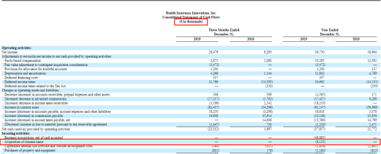 此前,用戶GeorgeK曾爆料過,HealthInsurance.com的交易起源于一宗收購案,并展示了該公司的季度財報和合并現(xiàn)金流量表。