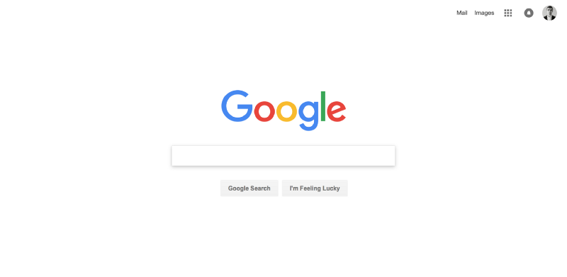 在設計當中,白色常常用作留白,用以突出周圍的色彩、控件。正確使用留白是一項非常重要的設計技能。以Google首頁為例,白色讓其他的色彩更加突出,更有力量: