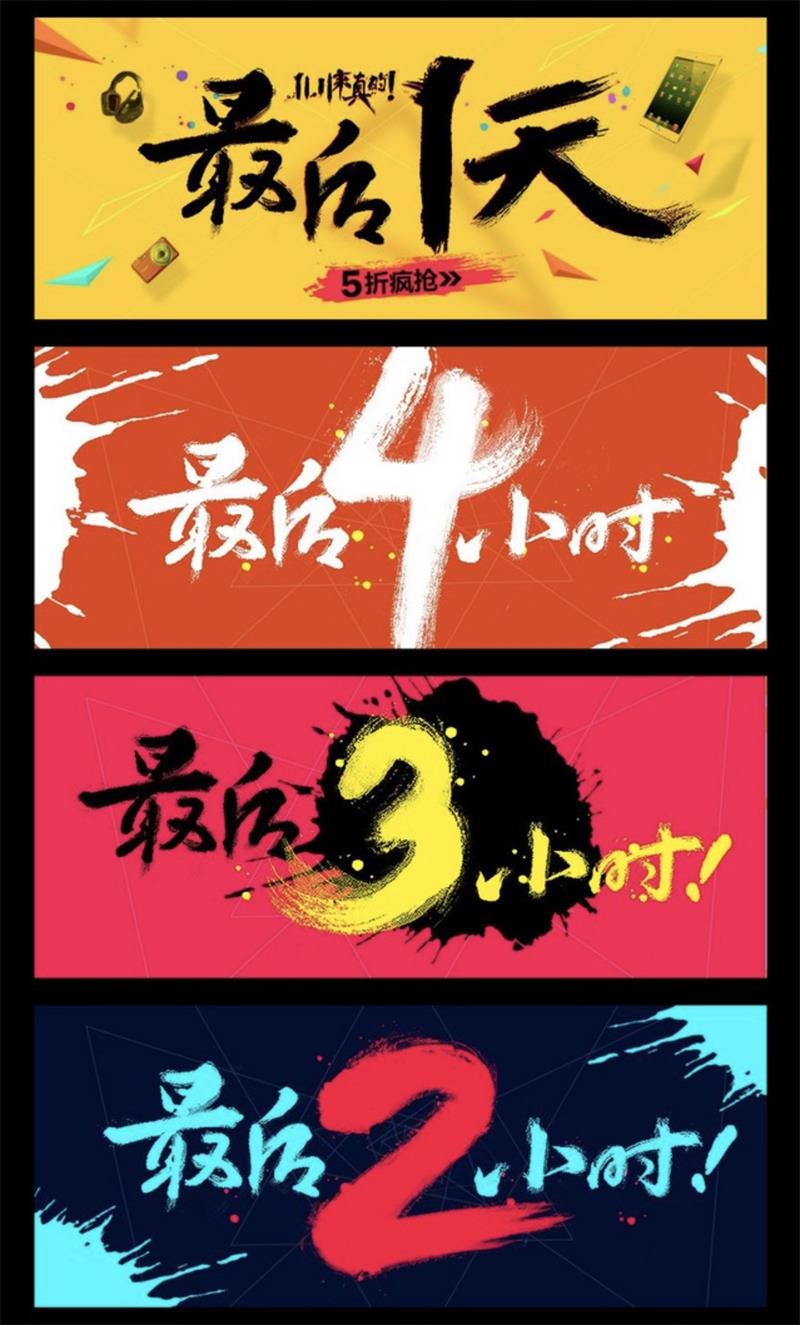 這種手寫毛筆字效果,給人感覺非常瀟灑有緊迫感,適合促銷倒計(jì)時(shí)活動(dòng)設(shè)計(jì)
