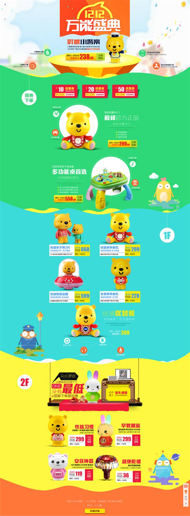 采用產(chǎn)品黃色為主色調(diào),并采用藍(lán)色、綠色作為模塊設(shè)計(jì)替換色。顏色搭配很是符合孩子喜歡愛,當(dāng)然孩子家長看著也甚是覺的可愛,產(chǎn)品可愛,給產(chǎn)品烘托出可愛的氛圍。