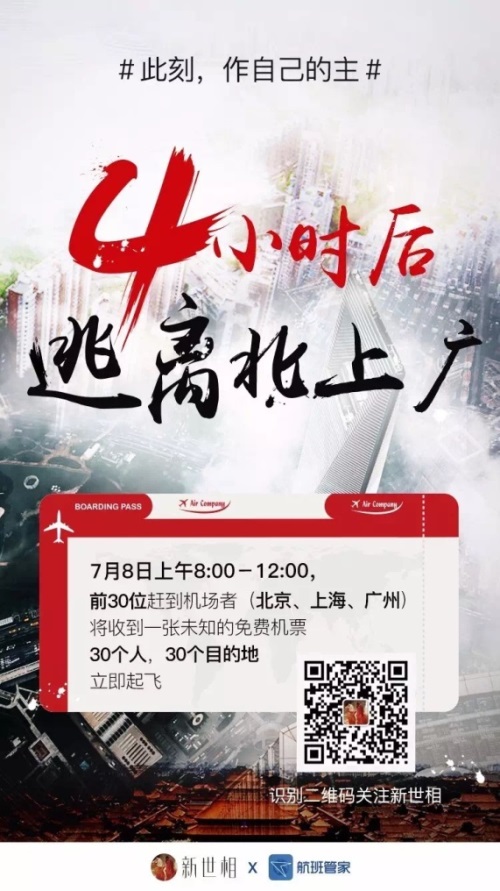 第三,能夠調(diào)動(dòng)用戶的情緒,與用戶產(chǎn)生共鳴。比如新世相“四小時(shí)后,逃離北上廣”。