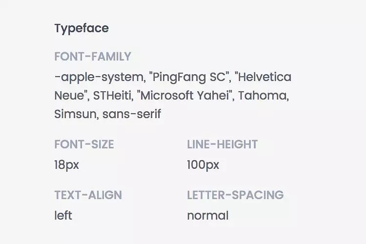 在了解了瀏覽器的字體調(diào)用規(guī)則后,再排除 FONT-FAMILY 列表中一些我們?nèi)粘S玫匠R娮煮w,例如 “ PingFang SC(蘋方-簡)”、“ Helvetica Neue ”、“ STHeiti(華文黑體)”、“ Microsoft Yahei(微軟雅黑)”、“Simsun(宋體)”,最后得到你想要字體就非常簡單了。