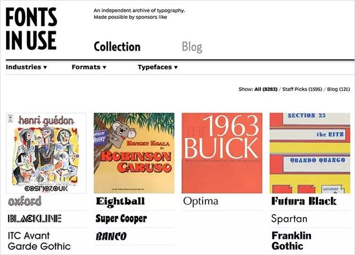 還有一個網(wǎng)站 Fonts In Use 專門收集各類設(shè)計作品中的所使用的西文字體,不妨可以做為參考。