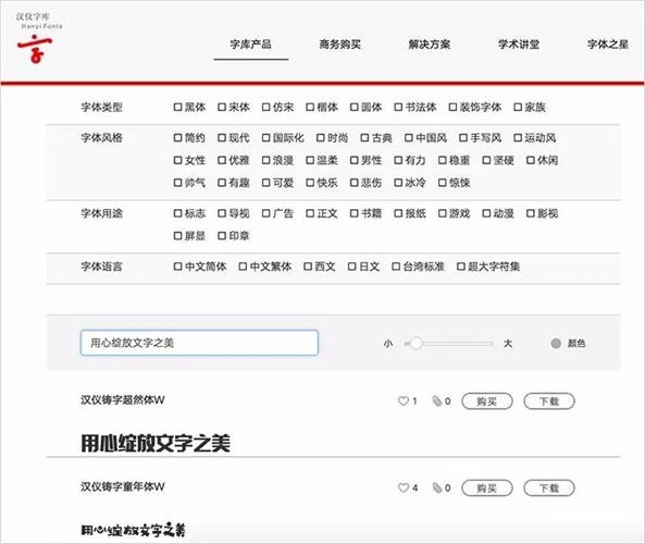 因為字體公司之間的并購,獨立的小型字體工作室已所剩不多。各種字體大廠(例如方正、漢儀、造字工房)都提供了字體列表實時預(yù)覽你所自定義的文字的功能。在你知道了所查字體的大致分類以及特性之后再使用這類字體大廠提供的篩選條件來縮小尋找范圍,往往有時候會產(chǎn)生奇效。