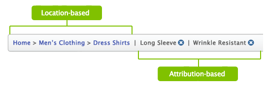 這類基于屬性的面包屑常見于電子商務類網站,產品常常基于類別和屬性而組織到不同的子目錄中,基于屬性的分類讓用戶更容易理解產品和產品之間的關系,提供了更多不同的瀏覽路徑。