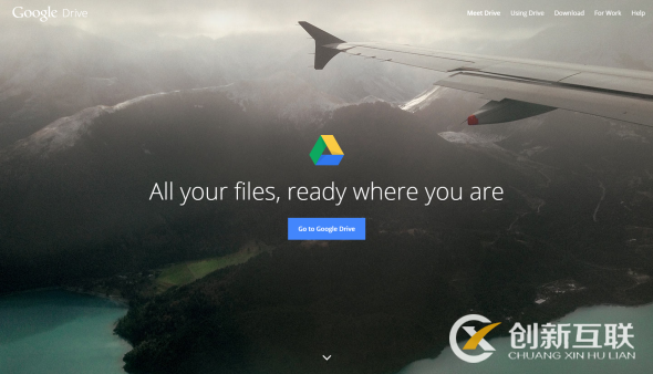 首先需要提煉產(chǎn)品特性關(guān)鍵詞,通過關(guān)鍵詞的形式尋找合適的圖片。 上圖是google云盤官網(wǎng)banner背景為一張在飛機向外看的圖片,不難發(fā)現(xiàn)用這種比擬手法來表現(xiàn)云盤的口號“隨時隨地使用”,在任何時候、任何地點都可以使用文件。換位思考,假如我們來設(shè)計google云盤官網(wǎng),首先提煉出關(guān)鍵詞:隨時隨地、自動同步、超大空間等等,用最能突出特點和有代表性的關(guān)鍵詞來尋找合適的圖片。