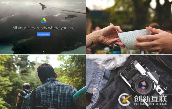 什么是圖片品牌化?通過關(guān)鍵詞尋找到的圖片進行深度加工處理,使之在項目中運用到的圖片都是一整套的、風格統(tǒng)一的,比如可以在圖片的色調(diào)、色彩飽和度與特色風格上做調(diào)整等等,下面舉幾個案例。 Google Drive官網(wǎng)摘取出來的圖片,這些圖片不難發(fā)現(xiàn)無論在色調(diào)、色彩飽和度上是一致的,特點是低飽和度、顏色深沉和圖片噪點,顏色上新穎有特色、風格上具有明顯的品牌統(tǒng)一性。