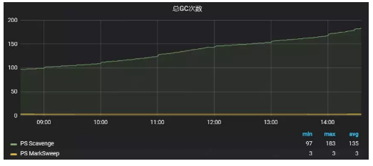 圖8:某Tomcat實(shí)例默認(rèn)垃圾回收器總GC次數(shù)曲線