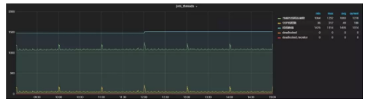 JVM線程數(shù)的曲線統(tǒng)計,能夠讓我們更直觀的看到JVM線程當(dāng)前的運(yùn)行情況。