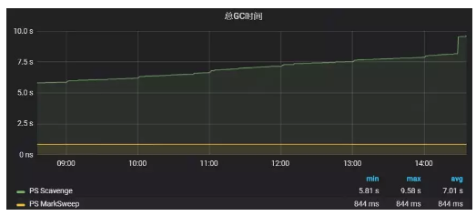 圖9:某Tomcat實(shí)例默認(rèn)垃圾回收器總GC時間曲線