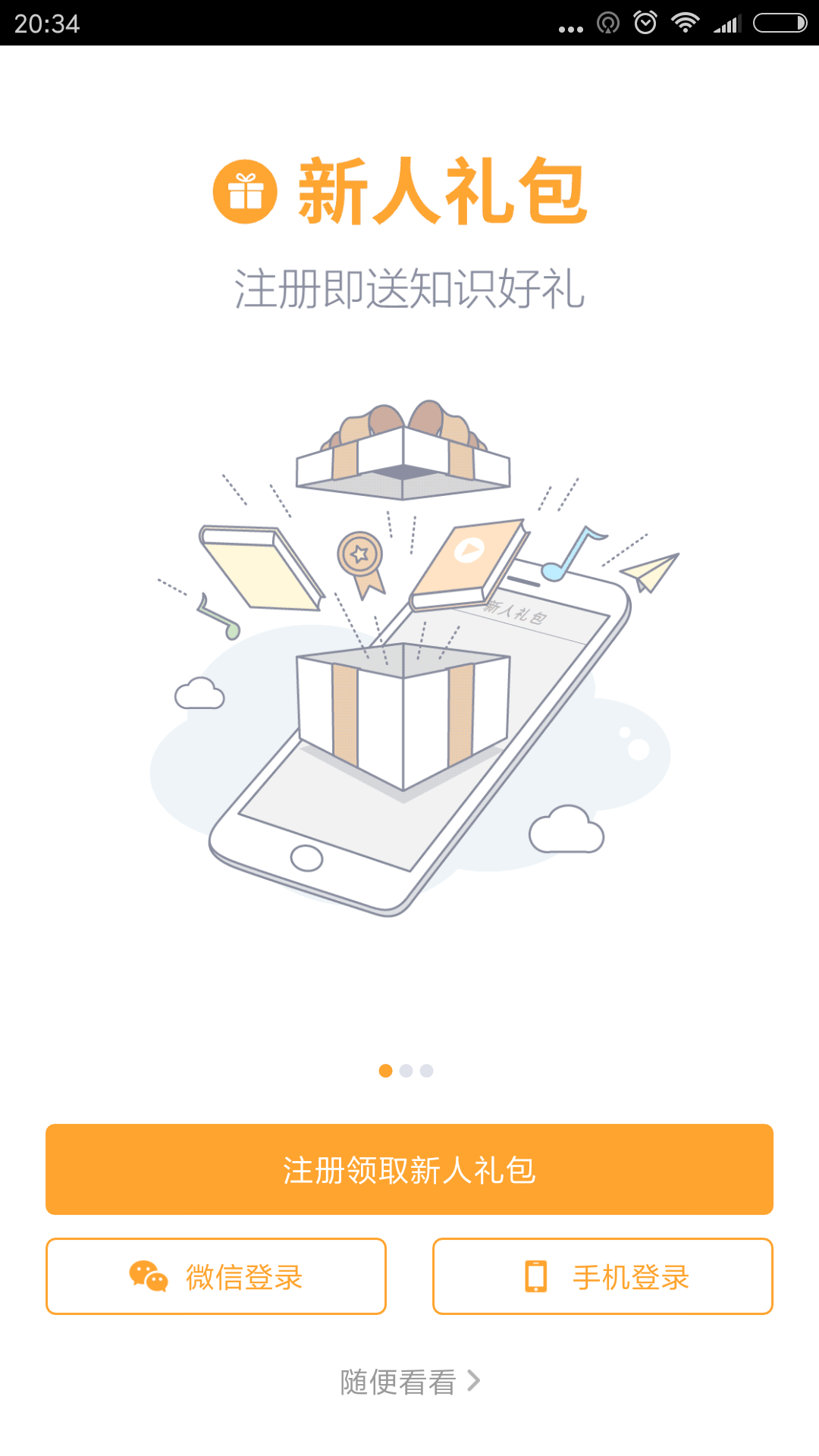 第二種,產(chǎn)品還是會引導(dǎo)你進行注冊登錄、但是還是同時提供了一個“隨便看看”的入口,用戶可以不需要進行注冊登錄便可以使用產(chǎn)品。直到用戶需要使用到一些帶有“個人屬性”的產(chǎn)品功能時,才會提示用戶去進行注冊登錄。
