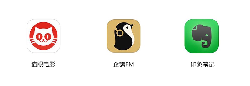 比如:貓眼電影,logo是一只瞪著眼睛貓;企鵝FM,是一只帶著耳機(jī)的企鵝;印象筆記,是一頭大象。