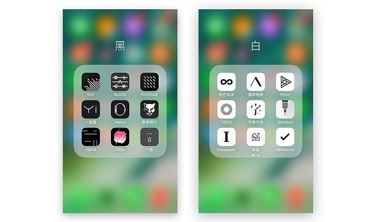 像比較文藝類的,視頻或圖片編輯器、酷炫的閱讀或書寫有裝逼文字的輕量APP,比較鐘愛黑白色。