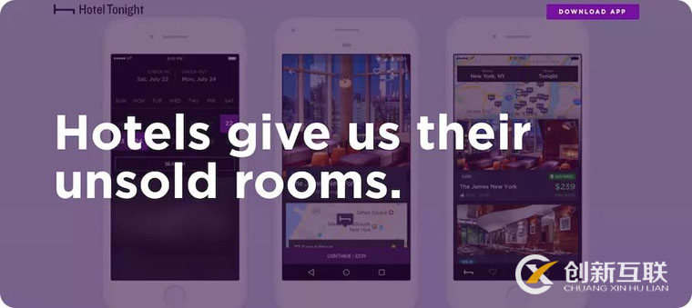 Hotel Tonight酒店是當(dāng)天預(yù)訂酒店客房的工具。 著陸頁的獨(dú)特設(shè)計使網(wǎng)頁成為網(wǎng)頁開發(fā)者的獨(dú)特風(fēng)格。 這些圖片的排版和處理有一個非常清晰的處理思路,一個好的搭配會給你一種探索的感覺。 該頁面使用全局視差滾動來呈現(xiàn)獨(dú)特的布局。