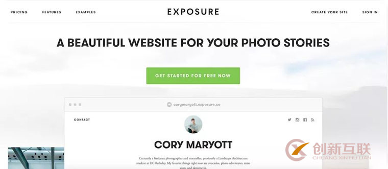 如果你喜歡用圖像來講故事,那么你不能錯過曝光。 與傳統(tǒng)的照片托管和演示平臺不同,Exposure的優(yōu)勢在于使用圖像呈現(xiàn)故事的全部功能以及最終的高品質(zhì)閱讀體驗(yàn)。 頁面介紹令人耳目一新,呼吸強(qiáng)烈。 中間的CTA按鈕清楚地呼叫用戶:開始記錄你的美妙旅程。