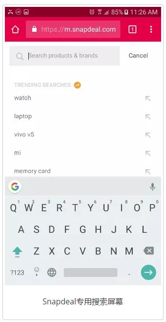 當(dāng)用戶點(diǎn)擊搜索欄時(shí)顯示專用搜索屏幕。一旦用戶執(zhí)行了自己的搜索,這樣可以顯示諸如趨勢(shì)或熱門搜索之類的有用內(nèi)容以及搜索歷史記錄或個(gè)性化建議。