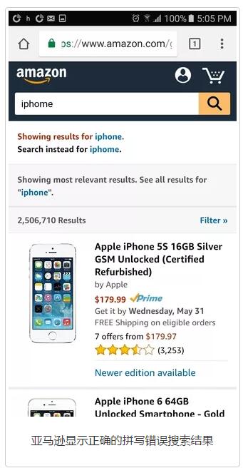 在移動(dòng)鍵盤上鍵入并不容易。通過糾正常見拼寫錯(cuò)誤并顯示更正搜索字詞的結(jié)果來(lái)幫助您的用戶。例如,如果搜索項(xiàng)是“iphome”,則顯示“iphone”的搜索結(jié)果是有意義的。
