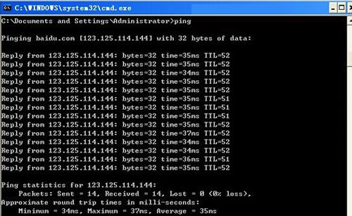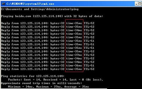 最后,教您看ping圖,無論是ping網(wǎng)址,還是ping目標(biāo)ip,得出的ping值越小越好。(Ping值就是圖片上time=35ms這一列)ping值在同一個數(shù)字周圍,就代表越穩(wěn)定,但是,ping值不是鑒定ip速度的唯一標(biāo)準(zhǔn),因為在你本地網(wǎng)絡(luò)有延遲的情況下,ping值會比較高的。最好是結(jié)果tracert圖一起做比較,得出的結(jié)果才比較準(zhǔn)確。