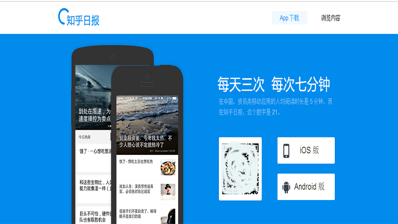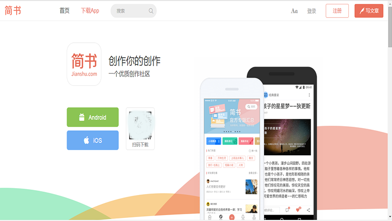從上面的兩張圖中,我們能清楚的看到,圖標本色與標題都采用與簡書在應用商店中相同的配色方案。在下載方面,也針對不同用戶采取了國內常用的三種方法,即:蘋果、安卓、掃碼!