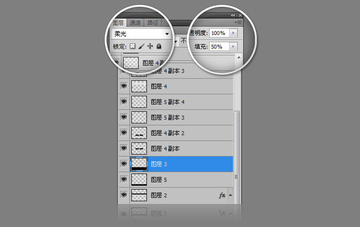 ★只需要明白三個(gè)關(guān)鍵詞:疊加、柔光和透明度(填充)。