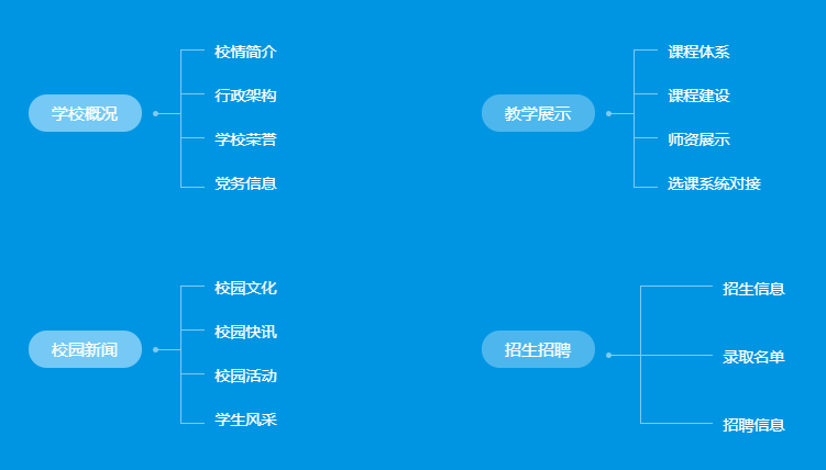 宣傳模塊,這受當(dāng)?shù)氐沫h(huán)境和地理信息的制約,每個(gè)地區(qū)的文化和特色不一樣;學(xué)校的師資管理,學(xué)校互動(dòng)模塊,這包括學(xué)員的報(bào)名須知,報(bào)名程序,學(xué)員論壇區(qū),以及一些過(guò)往學(xué)員的反饋情況等;管理模塊,學(xué)生檔案管理模塊,學(xué)員展示模塊等。