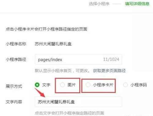 比如舉例本篇,插入下大閘蟹的小程序哈,點(diǎn)它即可查看蘇州大閘蟹禮券禮盒~