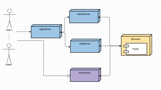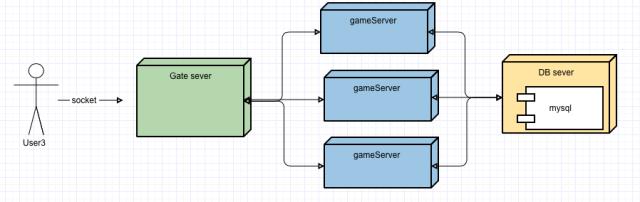 玩家先登錄“大廳服務(wù)器”,然后選擇組隊(duì)游戲的功能,服務(wù)器會(huì)通知參與的所有游戲客戶端,新開一條連接到房間服務(wù)器上,這樣所有參與的用戶就能在房間服務(wù)器里進(jìn)行游戲交互了。