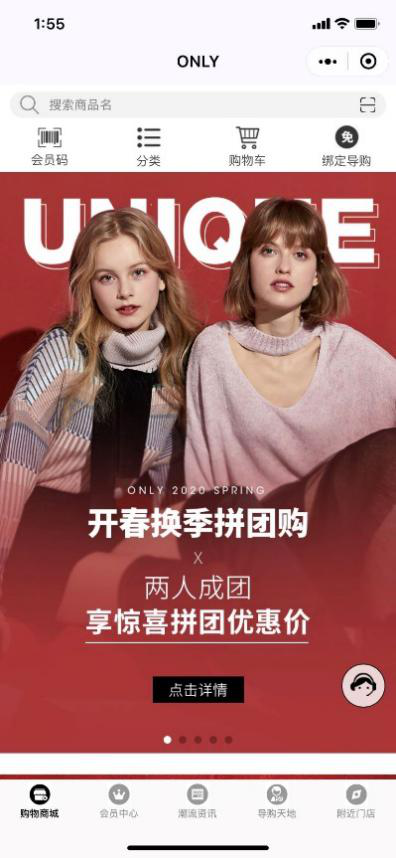 案例背景:2018年3月,綾致就與騰訊智慧零售部門合作推出小程序商城WeMall,該小程序商城被稱為“線上二樓”,以線下導(dǎo)購為中心建立社群,通過Wemall完成服務(wù),比如導(dǎo)購可以通過朋友圈或私聊發(fā)布營銷內(nèi)容,顧客可以直接通過分享跳轉(zhuǎn)購買,導(dǎo)購直接獲得銷售提成。