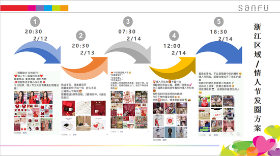 賦能培訓(xùn)后,三福對全國的導(dǎo)購進行統(tǒng)一規(guī)范的IP人設(shè)輸出,并對朋友圈內(nèi)容進行統(tǒng)一輸出,整改前后朋友圈和單場群秒殺銷量均有提升。