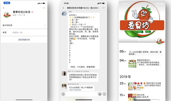 疫情期間,愛果坊一方面通過擴充品類,加入了更高頻剛需的蔬菜作為引流產(chǎn)品,另外一方面,愛果坊在每個門店配置了工作手機,由店長管理。本次疫情,愛果坊利用私域流量大力發(fā)展線上營銷,使用群營銷和朋友圈營銷,每天在微信群進行產(chǎn)品預(yù)告預(yù)售,接龍秒殺,完成門店的每天2.5萬+的銷售業(yè)績。