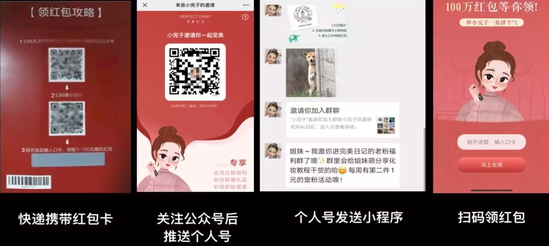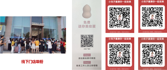 線下:這是好日記正佳店的活動,我們會發(fā)現(xiàn)好日記不僅僅在線上吸粉,在線下粉絲留存也做得非常好,他通過免費送化妝彩蛋,利用活碼將線下的粉絲留存到微信號里進行維護。