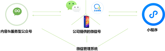 我對線下零售企業(yè)在私域的布局建議是:除了公司提供工作手機、工作微信和企業(yè)微信以外,公司還要布局一個微信公眾號來做內(nèi)容發(fā)布和會員維護服務(wù),同時要用小程序商城來做銷售轉(zhuǎn)化。當(dāng)然不可或缺的是,底層還需要有一個靠譜的微信管理系統(tǒng)。