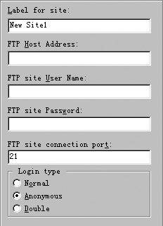 1、運行CuteFTP,在“FTP Site Manager(FTP站點管理)”窗口中,單擊“New”按鈕,就會彈出一個如圖1所示的對話框。