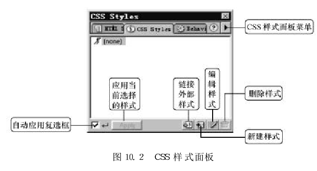 1.打開CSS樣式面板在菜單欄中選擇“Window"→“CSSStyles"命令(或單擊微型啟動面板上的圖標),打開css樣式面板,如圖所示。