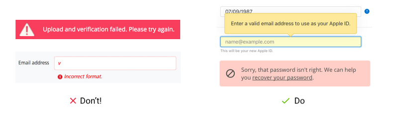 提示信息應(yīng)該明確的表明發(fā)生了什么錯(cuò)誤、發(fā)生的原因以及解決方法。將你的錯(cuò)誤提示信息看作是一次對(duì)話,跟用戶說人話。確保你的文案是禮貌性的、易于理解的、友好的并且沒有晦澀難懂的專業(yè)術(shù)語。