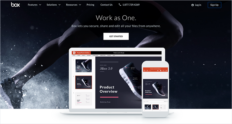 云存儲(chǔ)應(yīng)用Box用產(chǎn)品界面和照片混搭的形式來表現(xiàn)“Work as One”的產(chǎn)品理念: