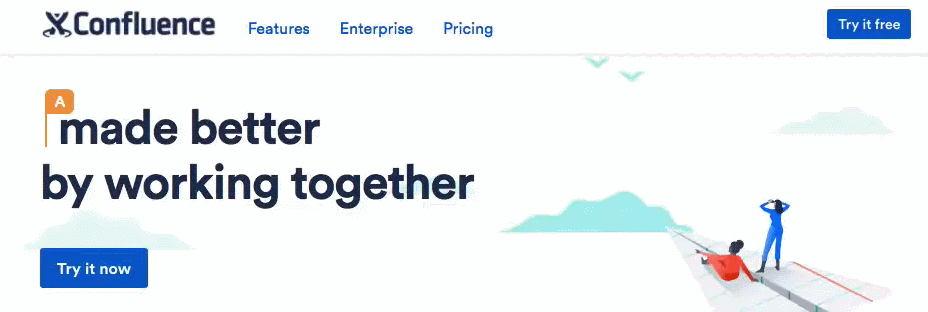 Atlassian旗下的Confluence品牌的核心價(jià)值是“make better by working together”,因此在動(dòng)態(tài)slogan中保持核心文案不變,切換開頭的主語來突出產(chǎn)品的適用范圍: