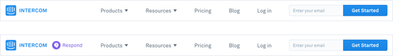 繼續(xù)以Intercom為例,首頁導(dǎo)航在滾動(dòng)時(shí)保持常駐。當(dāng)點(diǎn)擊首頁導(dǎo)航到達(dá)子產(chǎn)品頁面后,導(dǎo)航保持一致,只是在原先的主LOGO旁多了一個(gè)子產(chǎn)品LOGO來表明當(dāng)前所在頁面,點(diǎn)擊主LOGO可以返回首頁: