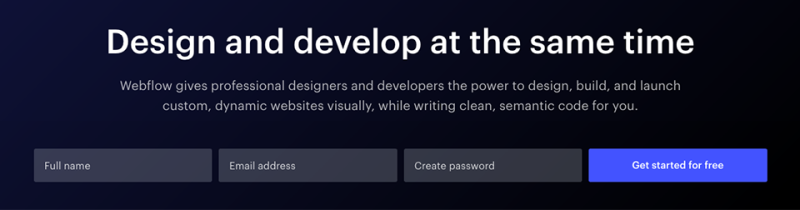 Webflow則直接把需要填寫的注冊(cè)項(xiàng)全列出來,這適用于注冊(cè)項(xiàng)在三個(gè)以內(nèi)的情況: