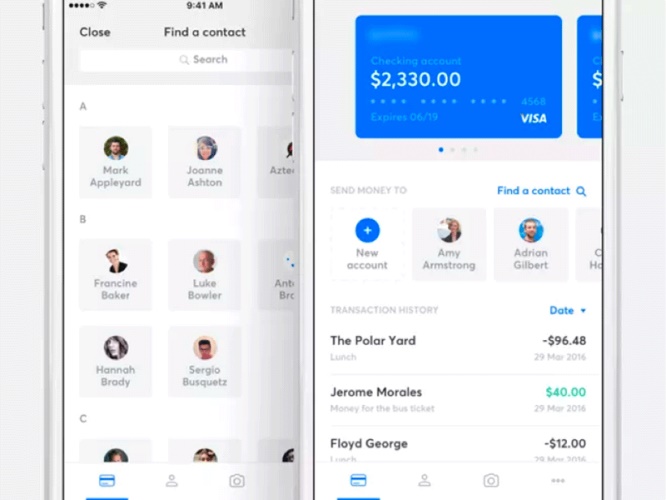 示例如下:是大海從 dribbble 上找來的設(shè)計,通訊錄的設(shè)計利用了卡片設(shè)計。