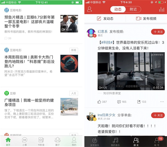示例如下:分別是豆瓣的首頁,網(wǎng)易云音樂的動態(tài)截圖。