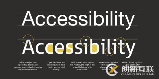 要注意的事情是,包容性設(shè)計(jì)并不是意味著非得犧牲優(yōu)雅和個(gè)性。一款精心設(shè)計(jì)、可訪問性優(yōu)秀的字體是可以兼顧優(yōu)雅和個(gè)性的,不過高度的識(shí)別度和可讀性是核心,盡量包容更廣泛的用戶的需求。
