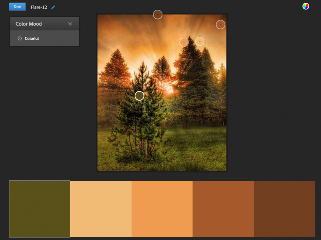 從這個(gè)案例可以看出,Kuler的確生成了一套不錯(cuò)的土黃色配色方案。我尤其喜歡Kuler中的圓圈兒拾色器,當(dāng)你在圖片中拖動(dòng)它的時(shí)候,調(diào)色板會(huì)實(shí)時(shí)地調(diào)整整套配色方案。當(dāng)你點(diǎn)擊想要調(diào)整單個(gè)的顏色的時(shí)候,拾色器將會(huì)繞過(guò)明亮的白邊,選取更符合整體風(fēng)格的顏色。最后,容我再贊一次Kuler!它的確是一款相當(dāng)不錯(cuò)的取色工具!