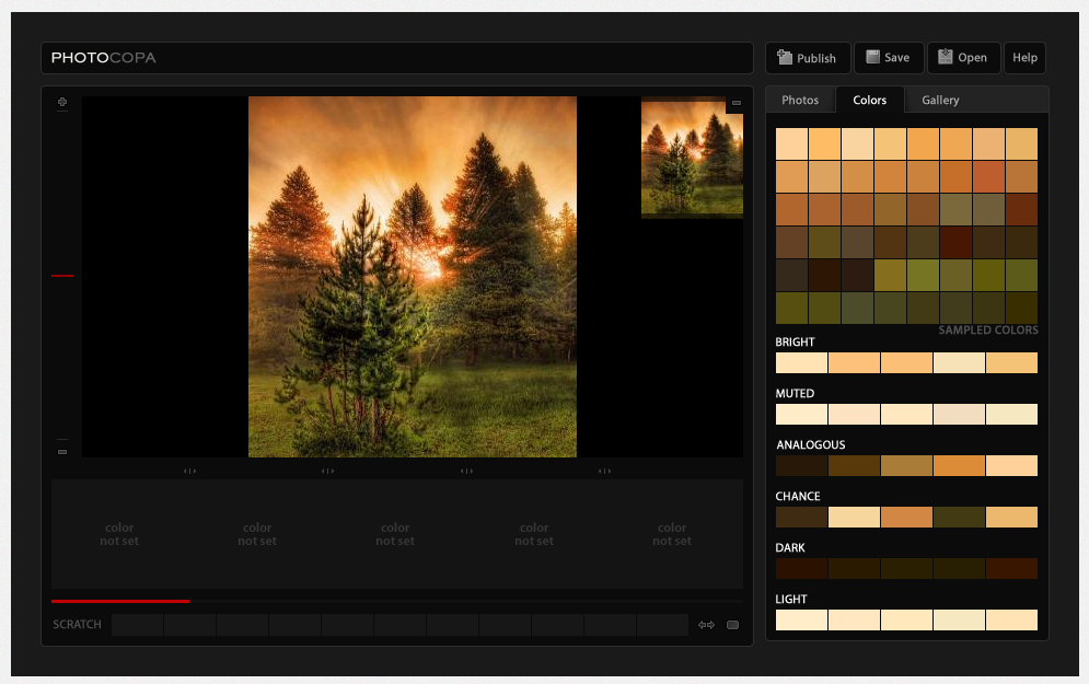 默認(rèn)情況下,你可以直接點(diǎn)擊”Colors”選項(xiàng)卡直接開始你的調(diào)色。同時(shí),你也可以進(jìn)入”Photos”選項(xiàng)卡,使用照片來(lái)抓取配色方案。