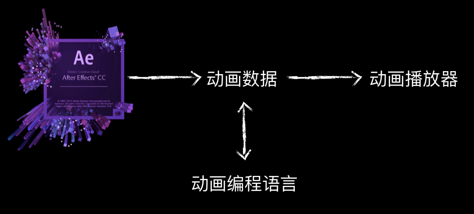 通過類似AE這樣的制作動畫的軟件,將動畫導(dǎo)出成一份JSON數(shù)據(jù),這份JSON數(shù)據(jù)將描述動畫。同時使用Player層結(jié)合DSL,將JSON數(shù)據(jù)和業(yè)務(wù)邏輯整合,完成帶有可交互的動畫。