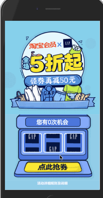 這是別人家的產(chǎn)品,也是巨人的肩膀。其實(shí)在Lottie和Bodymovin還沒有開源出來的時候,我們團(tuán)隊(duì)也有一個類似的產(chǎn)品,AFT(Animation Flow Tools)。AFT沒有開源,我不能聊得太多,簡單的說,AFT具有自己的渲染引擎、也可以借用別人的渲染引擎,比如Canvas、Weex之類。但其主要功能和特點(diǎn)是用來管理動畫,擴(kuò)展動畫。而且AFT也具有類似Lottie的特性,只不過我們的Player層是自己寫的。下面的示例就是使用AFT通過AE轉(zhuǎn)出來的一個動效,并且在實(shí)際項(xiàng)目中運(yùn)用的: