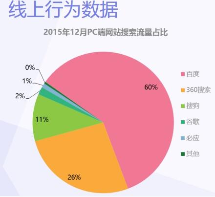餐桌上放了兩塊蛋糕免費(fèi)的蛋糕,其中一塊是9寸的,另一塊是6寸的,所有的人都鎖定了那塊大的去瓜分,是不是很蠢呢?事實(shí)上,在于流量的爭奪上不就是如此嗎?上面這是統(tǒng)計(jì)出搜索引擎的一些流量占比,還不算一些社交軟件如:微信、微博、公戶號(hào)……